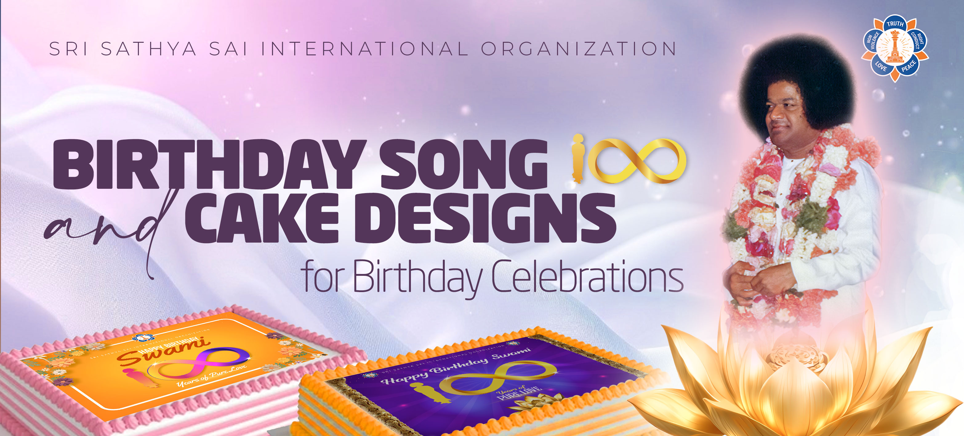 We are sharing a selection of cake designs that can be used for celebrating our beloved Swami’s 100th Birthday. These designs may be used as‑is or adapted to local needs.