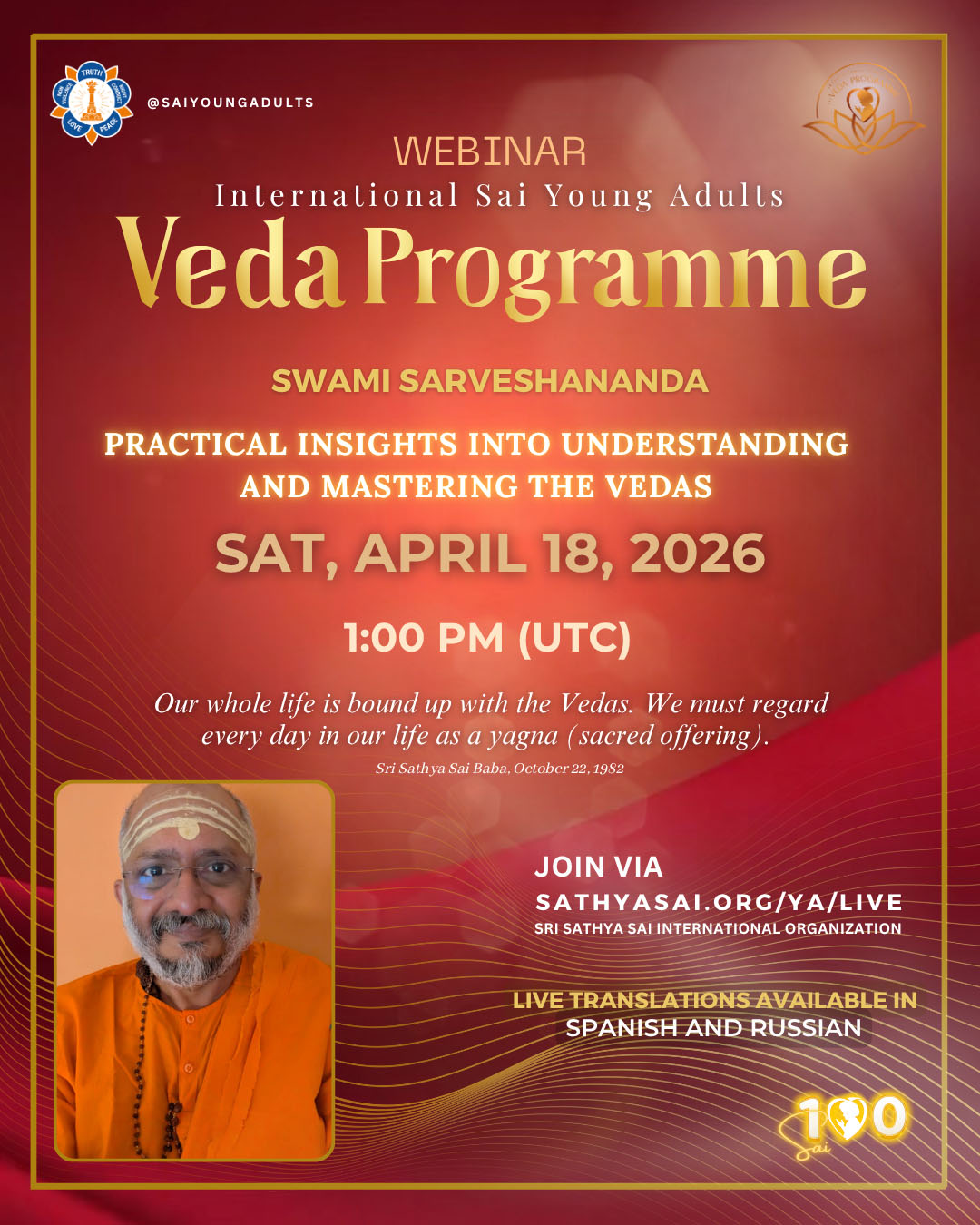 The Sri Sathya Sai International Veda Programme warmly invites you to the 20th Veda Webinar.