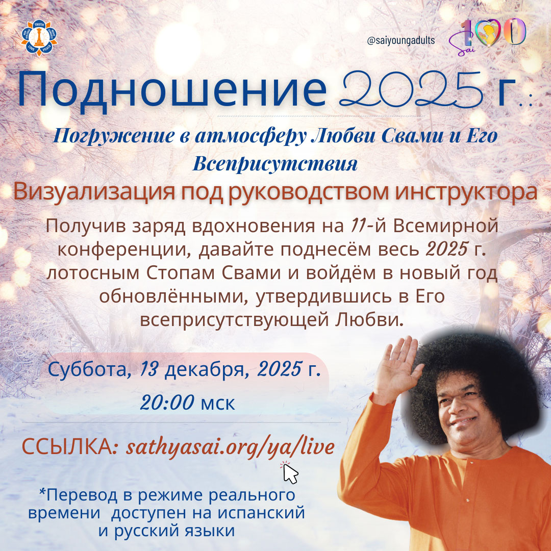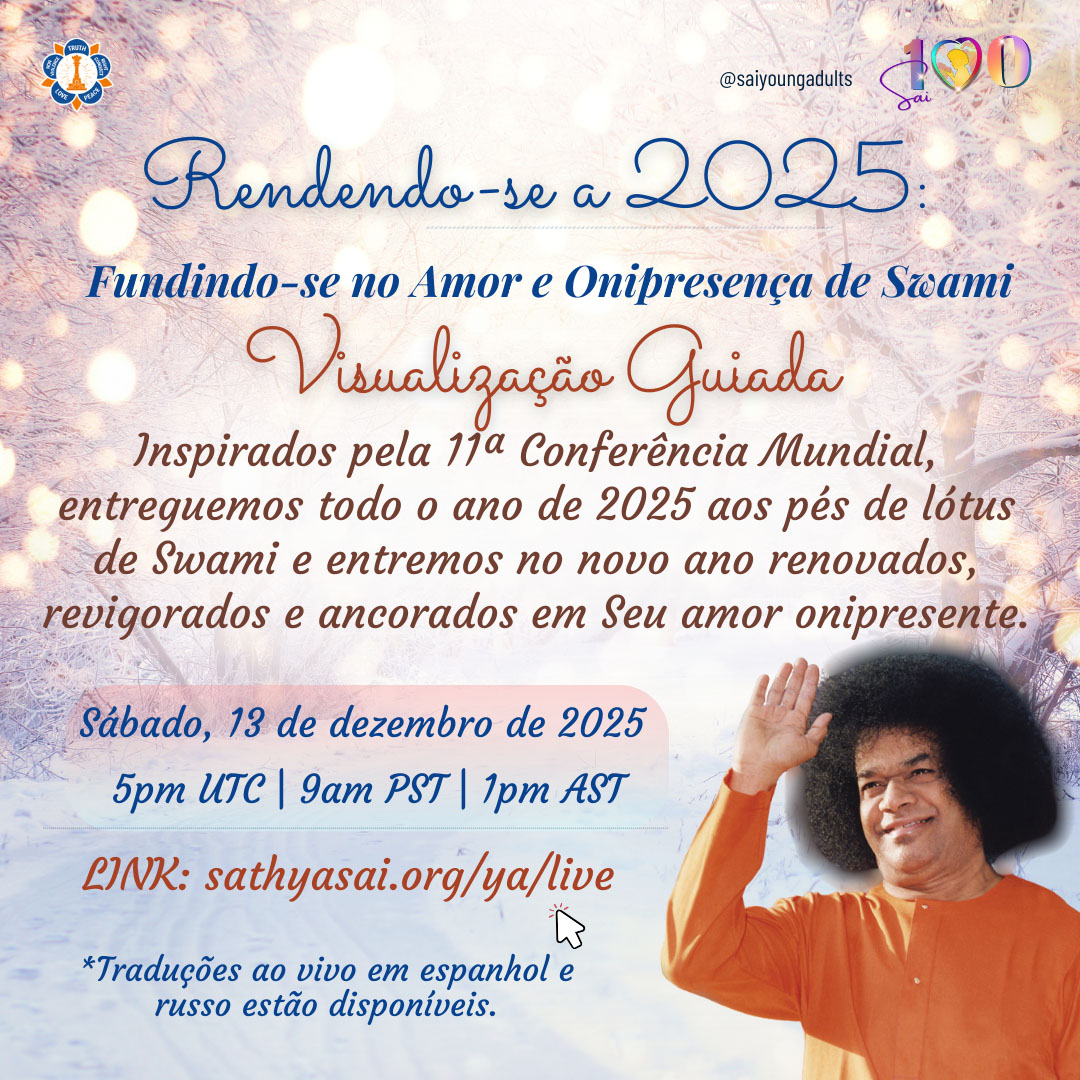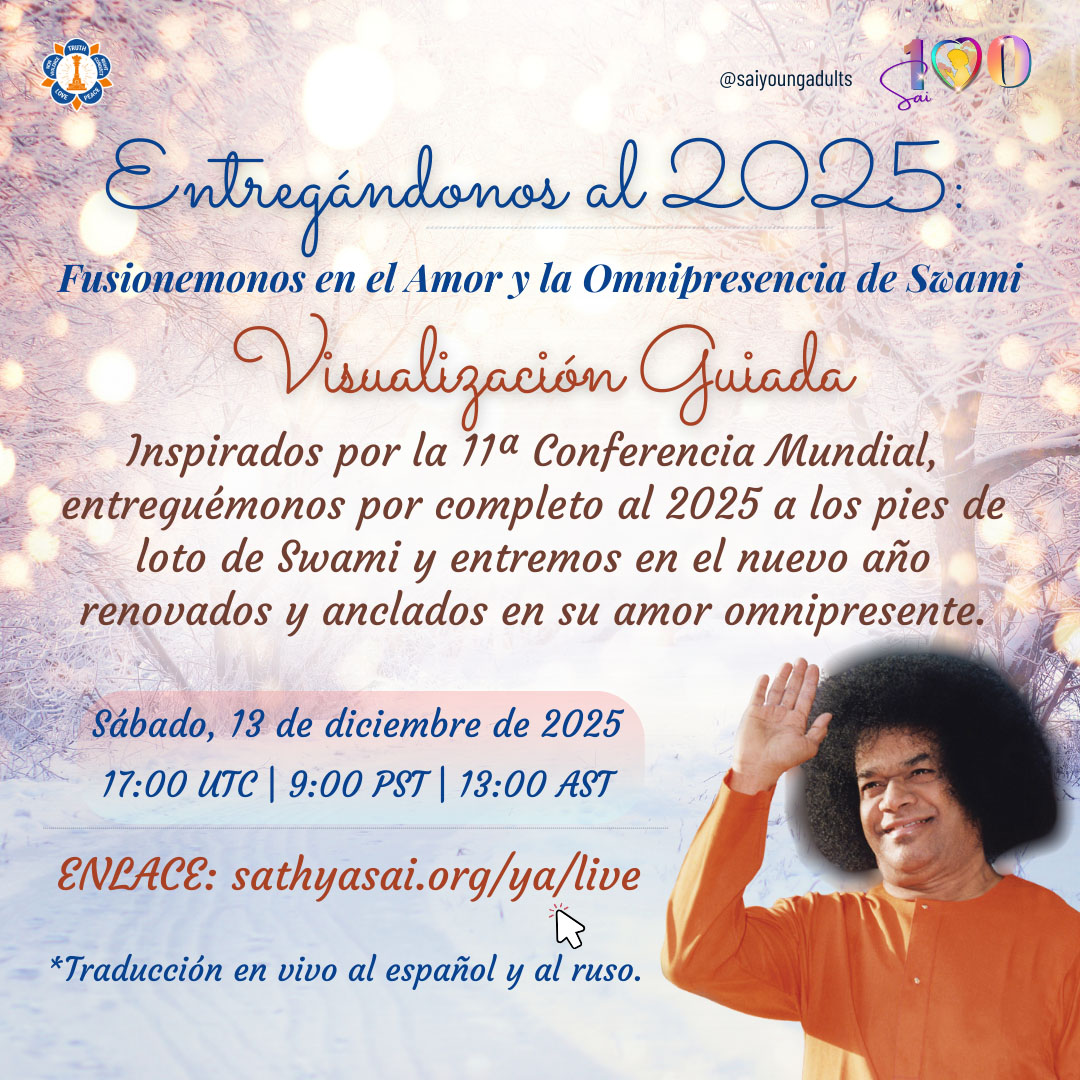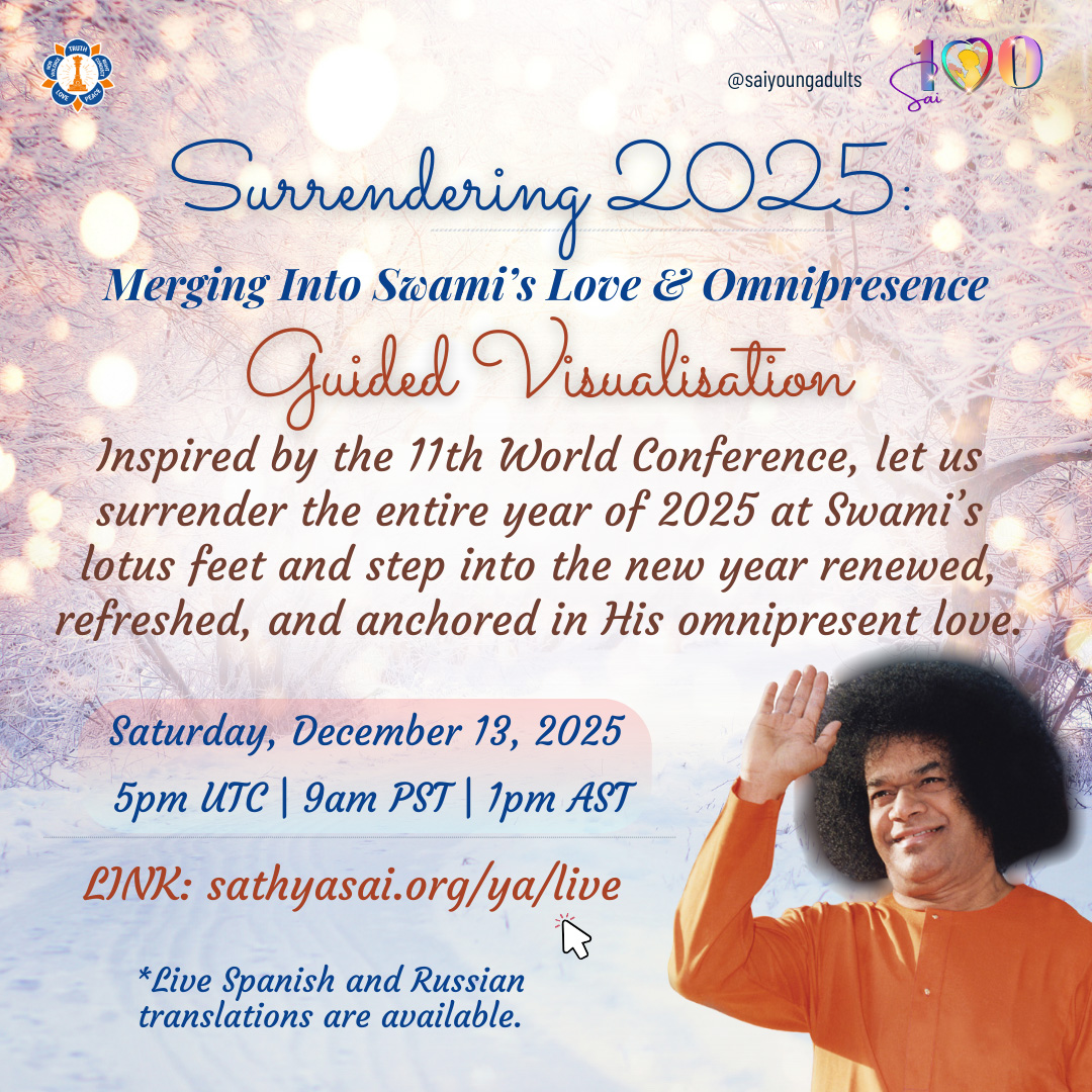 Inspired by the uplifting spirit of the 11th World Conference, this guided visualization invites us to release the old, refresh the heart, and step into the new year with clarity, devotion, and grace, fully anchored in Swami’s love and omnipresence.