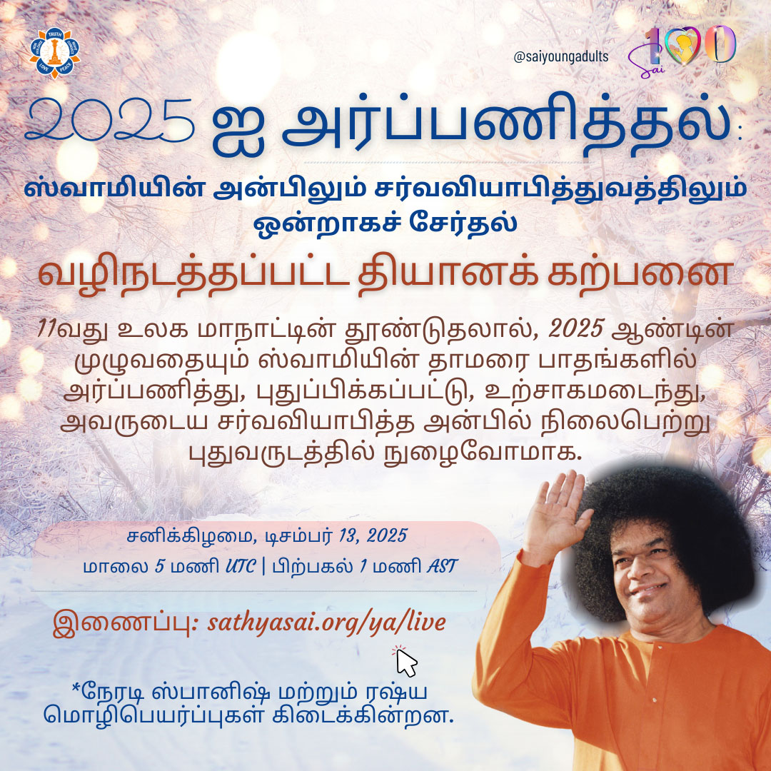 Join us for our final meditation of 2025. As we close this sacred year, let us come together as Young Adults to lovingly surrender all of 2025 at His lotus feet—every joy, challenge, lesson, and blessing.